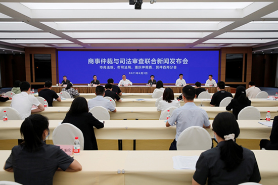 2021年6月3日,重慶市高級人民法院、重慶市司法局、重慶仲裁委員會、中國國際經(jīng)濟貿(mào)易仲裁委員會(貿(mào)仲)西南分會在重慶舉辦商事仲裁與司法審查聯(lián)合新聞發(fā)布會,通報重慶商事仲裁和司法審查工作相關(guān)工作情況。