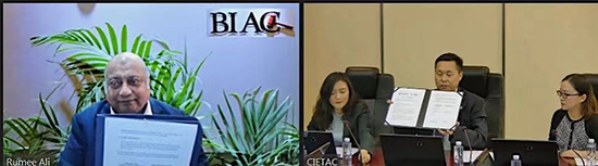 2021年6月16日,中國(guó)國(guó)際經(jīng)濟(jì)貿(mào)易仲裁委員會(huì)(CIETAC)與孟加拉國(guó)際仲裁中心(BIAC)通過(guò)線上方式舉行了《合作協(xié)議》簽署儀式。貿(mào)仲副主任兼秘書(shū)長(zhǎng)王承杰先生與孟加拉國(guó)際仲裁中心首席執(zhí)行官M(fèi)uhammad A. (Rumee) Ali先生分別代表雙方在《合作協(xié)議》上簽字。