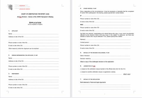 對(duì)于如何提交仲裁申請(qǐng)?王雯佳提醒,向CAS臨時(shí)仲裁庭提交申請(qǐng)應(yīng)以書面形式提交,以英文、法文或西班牙文書寫。當(dāng)事人可在CAS臨時(shí)仲裁庭辦公室獲得一份標(biāo)準(zhǔn)申請(qǐng)表。