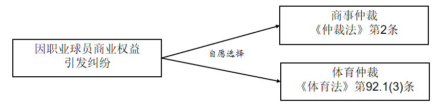(六)因職業(yè)球員商業(yè)權(quán)益引發(fā)糾紛,由當(dāng)事人自愿選擇商事仲裁、體育仲裁