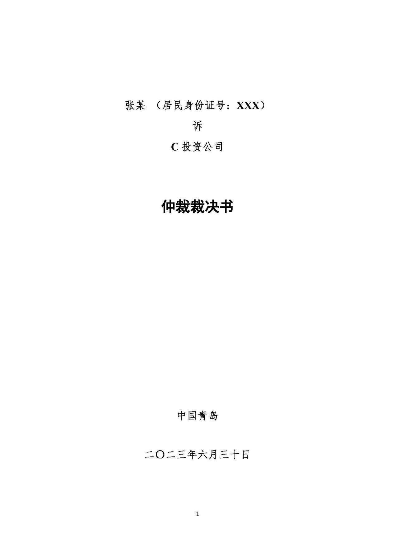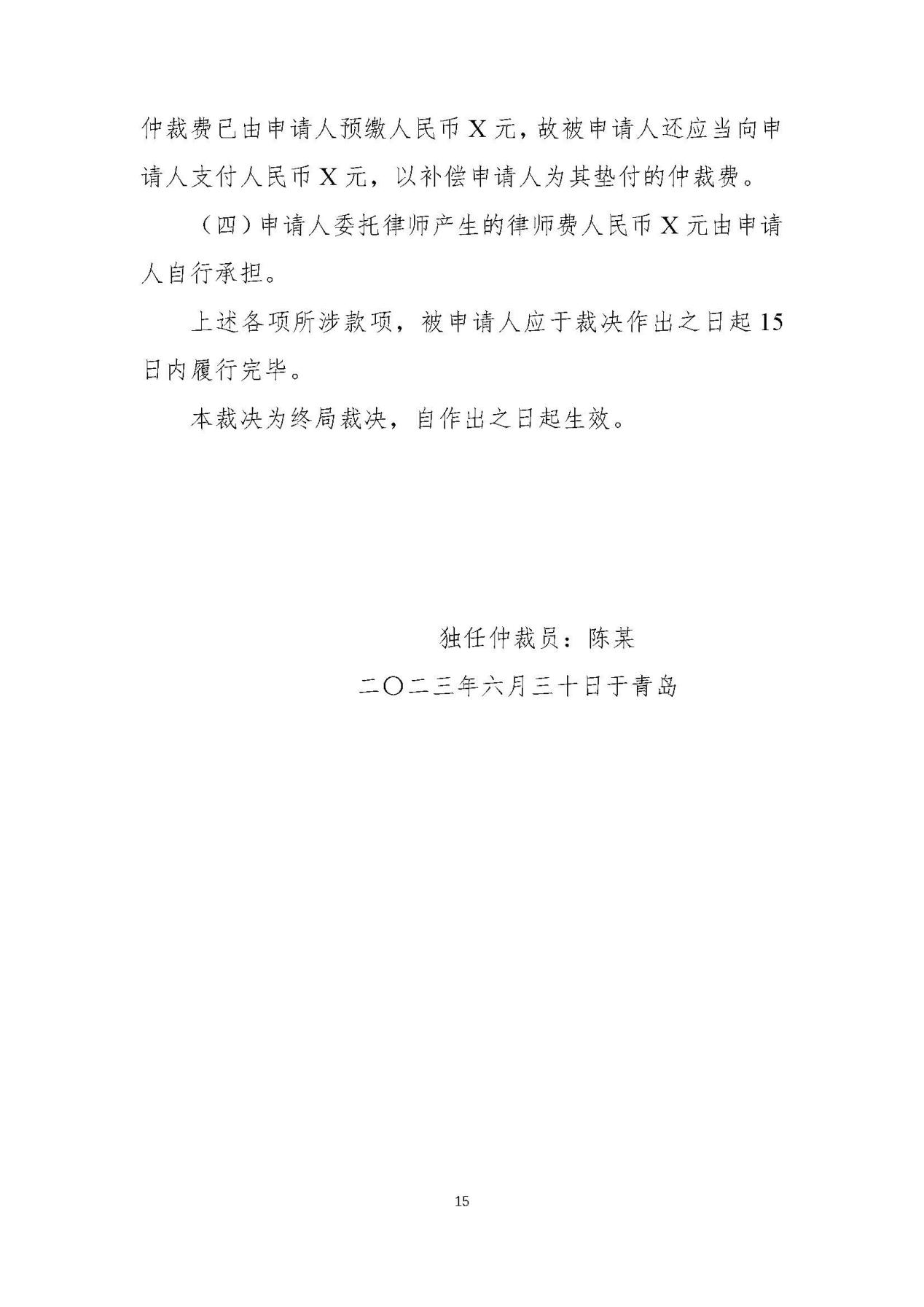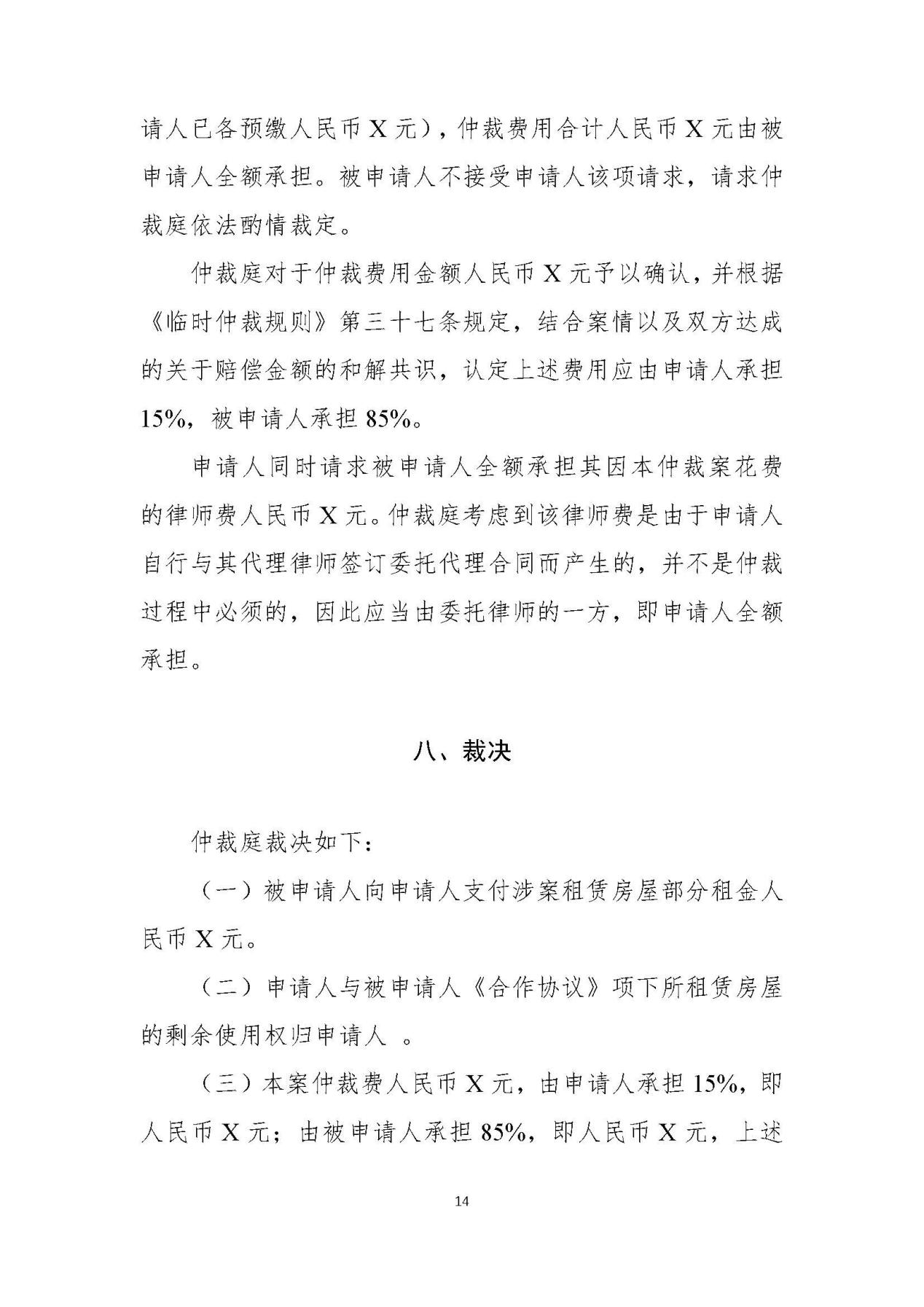 根據(jù)雙方當(dāng)事人約定,并經(jīng)征求本案仲裁員和雙方當(dāng)事人意見,現(xiàn)將脫密處理后的裁決書予以公開。