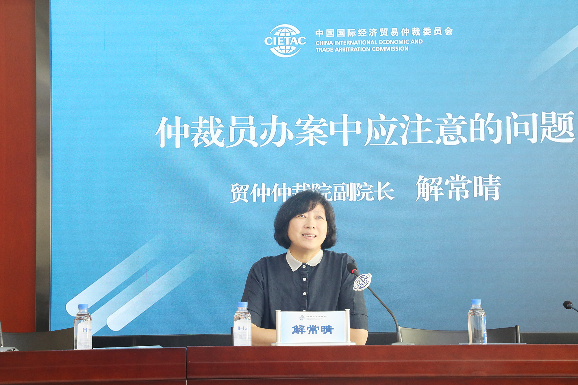貿(mào)仲委仲裁院副院長解常晴以實(shí)際案例分析了仲裁員在辦案中可能遇到的各種突發(fā)情況及風(fēng)險(xiǎn),提示仲裁員在辦案中應(yīng)注意的各項(xiàng)問題和應(yīng)對(duì)方法,強(qiáng)調(diào)了仲裁員應(yīng)嚴(yán)守的職業(yè)操守和責(zé)任。