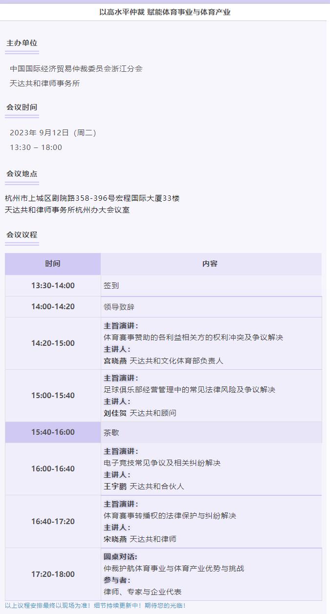 今年6月24日,新修訂的《中華人民共和國體育法》頒布一周年。一年來,我國體育仲裁與體育商事仲裁事業(yè)雙雙迎來快速發(fā)展。值此杭州亞運(yùn)會盛大召開之際,現(xiàn)擬在第十一屆中國仲裁周期間舉辦專場論壇,深度探討如何以高水平仲裁,賦能體育事業(yè)與體育產(chǎn)業(yè),探索體育糾紛及體育相關(guān)商事糾紛解決路徑,為我國的體育事業(yè)和產(chǎn)業(yè)發(fā)展提供法律視角、貢獻(xiàn)專業(yè)智慧。