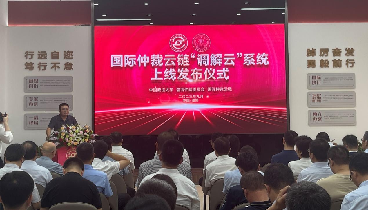 山東省司法廳一級調(diào)研員李世敏,淄博仲裁辦黨組書記、主任張公博,淄博仲裁辦黨組成員、副主任閆世學(xué),中國政法大學(xué)副教授、國際仲裁云鏈理事會副理事長周蔚,中國政法大學(xué)網(wǎng)絡(luò)安全和信息化辦公室副主任張軼舸,泰杭律師事務(wù)所主任、國際仲裁云鏈理事會理事汪政共同為調(diào)解云系統(tǒng)上線揭牌。
