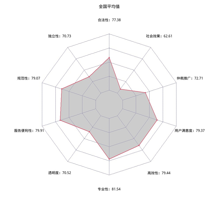 二級(jí)指標(biāo)反映的是仲裁價(jià)值的實(shí)現(xiàn)程度。從二級(jí)指標(biāo)得分情況來看,得分較高的是服務(wù)便利性、高效性和本地用戶滿意度。得分較低的是社會(huì)效果和透明度。社會(huì)效果指標(biāo)由兩個(gè)比例構(gòu)成,一是受案標(biāo)的額與仲裁機(jī)構(gòu)所在地國內(nèi)生產(chǎn)總值的比例,二是仲裁機(jī)構(gòu)受理案件數(shù)量與當(dāng)?shù)刂屑?jí)人民法院受理民商事案件的比例。仲裁機(jī)構(gòu)所在地中級(jí)人民法院的受案數(shù)量不完整的,以全國仲裁案件占全國民商事訴訟案件的比例為缺失值計(jì)算。仲裁受理民商事案件占訴訟案件比例較低,表明仲裁在促進(jìn)市場(chǎng)經(jīng)濟(jì)建設(shè)、優(yōu)化營商環(huán)境以及完善社會(huì)治理體系方面還具有較大的潛力。