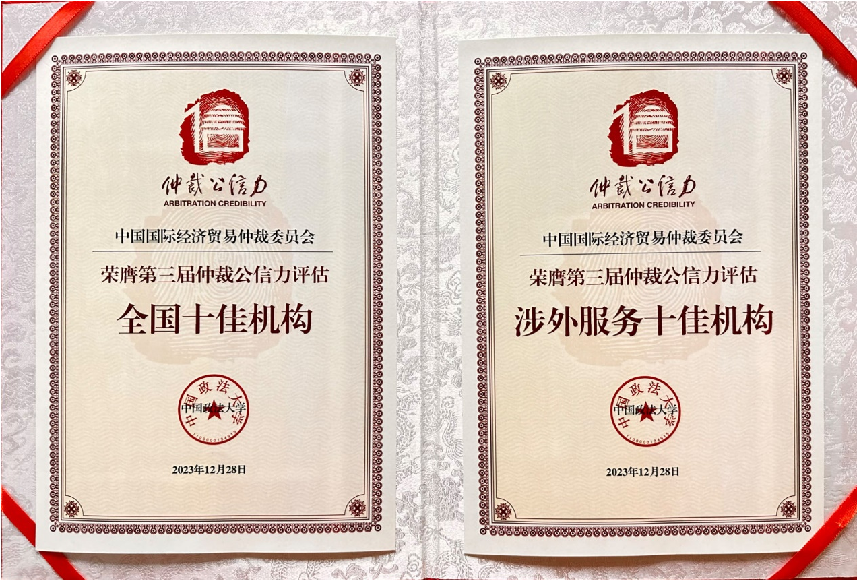 2023年12月28日,在北京舉辦的仲裁公信力評估報(bào)告發(fā)布會(huì)暨第三屆仲裁公信力論壇上,中國國際經(jīng)濟(jì)貿(mào)易仲裁委員會(huì)(以下簡稱“貿(mào)仲”)獲評“全國十佳仲裁機(jī)構(gòu)”和“涉外服務(wù)十佳仲裁機(jī)構(gòu)”雙十佳獎(jiǎng)項(xiàng)。本屆仲裁公信力評估圍繞“仲裁公信力指數(shù)”和“涉外仲裁服務(wù)指數(shù)”開展,貿(mào)仲兩項(xiàng)指標(biāo)分別達(dá)90分和98分,位居雙十佳首位,再獲殊榮,仲裁公信力、涉外服務(wù)優(yōu)勢獲得廣泛認(rèn)可。