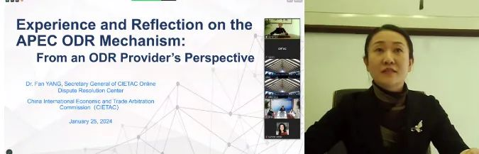 2024年1月25日-27日,亞太經(jīng)合組織(APEC)經(jīng)濟(jì)委員會(huì)關(guān)于網(wǎng)上爭議解決(ODR)的研討會(huì)在日本東京成功舉辦。會(huì)議的主題是“APEC經(jīng)濟(jì)體的網(wǎng)上爭議解決實(shí)踐:包括APEC ODR合作框架下的實(shí)踐”,會(huì)期為三天,以線上線下相結(jié)合的方式進(jìn)行。來自中國、中國香港、美國、日本、新加坡、韓國、加拿大、印度尼西亞等國家和地區(qū)的政府部門、爭議解決機(jī)構(gòu)和學(xué)界的30多位在線爭議解決領(lǐng)域的專家、學(xué)者、機(jī)構(gòu)代表等參加了會(huì)議研討。貿(mào)仲作為APEC ODR機(jī)制下官方認(rèn)可的現(xiàn)有四個(gè)ODR服務(wù)機(jī)構(gòu)之一,受邀派代表線上參會(huì)并發(fā)言。