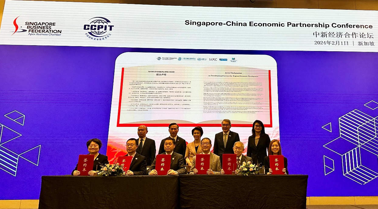 2月1日,在中國(guó)貿(mào)促會(huì)會(huì)長(zhǎng)任鴻斌率中國(guó)企業(yè)家代表團(tuán)訪問(wèn)新加坡期間,中國(guó)國(guó)際經(jīng)濟(jì)貿(mào)易仲裁委員會(huì)副主任兼秘書長(zhǎng)王承杰、中國(guó)海事仲裁委員會(huì)副主任李虎、中國(guó)貿(mào)促會(huì)調(diào)解中心執(zhí)行副主席蔡晨風(fēng)與新加坡國(guó)際仲裁中心首席執(zhí)行官林美恩、新加坡海事仲裁院主席趙錫燊、新加坡國(guó)際調(diào)解中心主席林長(zhǎng)仁在新加坡共同發(fā)布《為區(qū)域經(jīng)濟(jì)發(fā)展提供法律服務(wù)保障的聯(lián)合聲明》。中國(guó)貿(mào)促會(huì)會(huì)長(zhǎng)任鴻斌,新加坡貿(mào)易與工業(yè)部兼文化、社區(qū)及青年部政務(wù)部長(zhǎng)劉燕玲,中國(guó)駐新加坡大使館公使銜參贊宗長(zhǎng)青,新加坡工商聯(lián)合總會(huì)主席林明彥,新加坡律政部副常任秘書張伊靜出席并見(jiàn)證聲明發(fā)布。