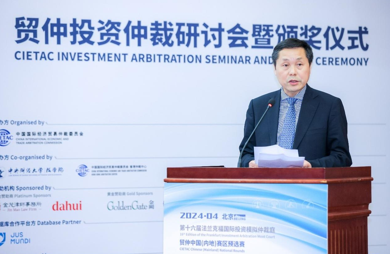 貿(mào)仲副主任兼秘書(shū)長(zhǎng)王承杰、香港特別行政區(qū)政府律政司司長(zhǎng)林定國(guó)、聯(lián)合國(guó)貿(mào)法會(huì)亞太區(qū)域中心主任Athita Komindr以及中央財(cái)經(jīng)大學(xué)副校長(zhǎng)栗崢教授致辭并頒獎(jiǎng)。
