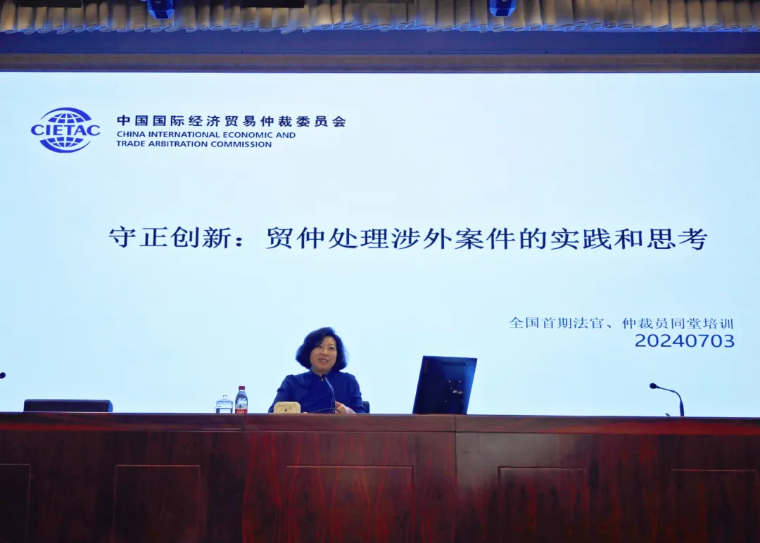 7月2日至6日,由司法部和最高人民法院共同主辦的首期仲裁員與仲裁司法審查法官同堂培訓(xùn)班在國家法官學(xué)院舉行。7月3日,中國國際經(jīng)濟(jì)貿(mào)易仲裁委員會(huì)(以下簡稱“貿(mào)仲”)仲裁院副院長解常晴應(yīng)邀以“守正創(chuàng)新:貿(mào)仲處理涉外案件的實(shí)踐和思考”為主題向參會(huì)的仲裁員和仲裁司法審查法官授課。