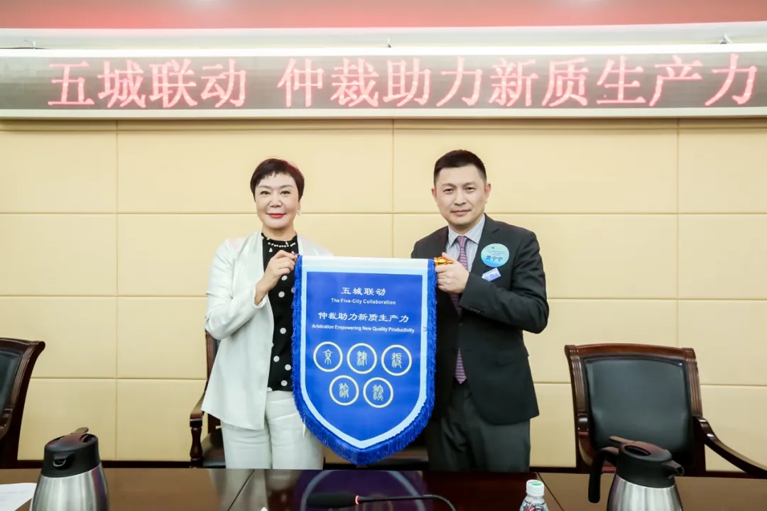 活動(dòng)最后舉行了仲裁業(yè)務(wù)交流會主辦地交接儀式。北京市律師協(xié)會副會長張麗霞將代表此次“五城聯(lián)動(dòng),仲裁助力新質(zhì)生產(chǎn)力”活動(dòng)的旗幟交付給上海市律師協(xié)會副會長黃寧寧。