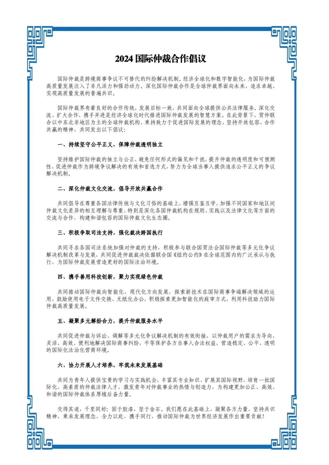 附:《2024國際仲裁合作倡議》
