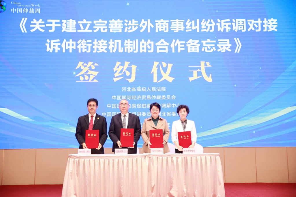 在合作協(xié)議簽署及發(fā)布儀式環(huán)節(jié),貿仲委與河北省高級人民法院、中國國際貿易促進委員會調解中心、中國國際貿易促進委員會河北省委員會就共建“涉外商事爭議訴調對接、訴仲銜接工作機制”“服務保障雄安新區(qū)及河北自貿試驗區(qū)建設機制”“涉外知識產權聯(lián)合保護機制”“共同推進法治化營商環(huán)境建設機制”簽署了《合作備忘錄》,意在為河北省引入國際先進仲裁、調解機構服務,便利當事人一站式爭議解決,各方合力,共同服務保障雄安新區(qū)及河北自貿試驗區(qū)建設,優(yōu)化河北省營商環(huán)境。