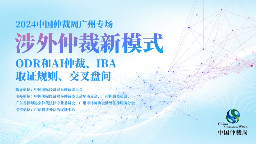 近日,2024中國仲裁周廣州專場活動“涉外仲裁新模式:ODR和AI仲裁、IBA取證規(guī)則、交叉盤問”成功舉辦。本次活動由中國國際經(jīng)濟貿(mào)易仲裁委員會指導(dǎo),由中國國際經(jīng)濟貿(mào)易仲裁委員會華南分會、廣州仲裁委員會、廣東省律師協(xié)會仲裁法律專業(yè)委員會、廣州市律師協(xié)會涉外法律服務(wù)分會共同主辦,并由廣東省涉外法治促進(jìn)中心支持。