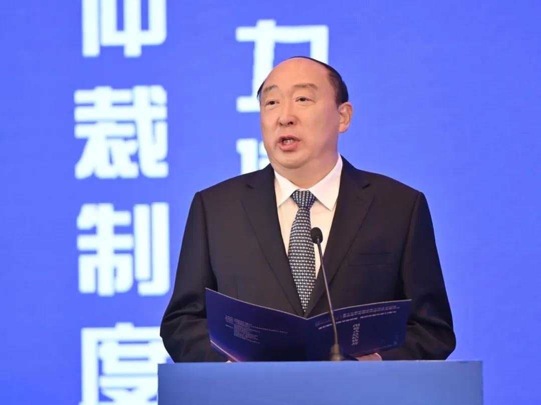 (中國國際貿(mào)易促進(jìn)委員會(huì)黨組成員、副會(huì)長、中國仲裁法學(xué)研究會(huì)會(huì)長于健龍作開幕致辭)