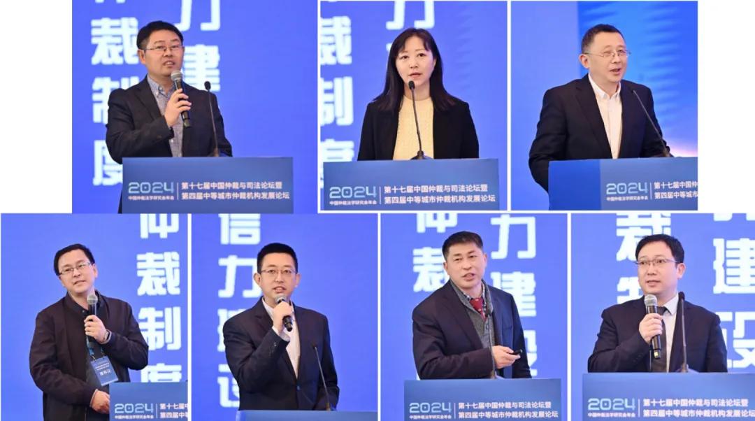 (第二議題“仲裁機(jī)構(gòu)改革與公信力建設(shè)”,從左至右、從上到下:張文廣、杜新麗、萬學(xué)忠、劉怒濤、宋濤、李政明、張振安)