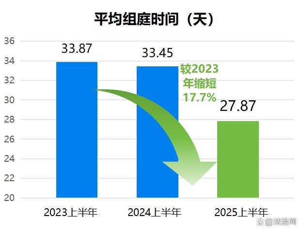 2025年上半年平均組庭時(shí)間壓縮至27.87天,較2024年上半年的33.45天縮短16.7%,較2023年上半年的33.87天縮短17.7%。通過(guò)組庭耗時(shí)的持續(xù)壓縮,案件進(jìn)入實(shí)體審理環(huán)節(jié)的效率大幅提升,為案件高效審理奠定了堅(jiān)實(shí)基礎(chǔ)。