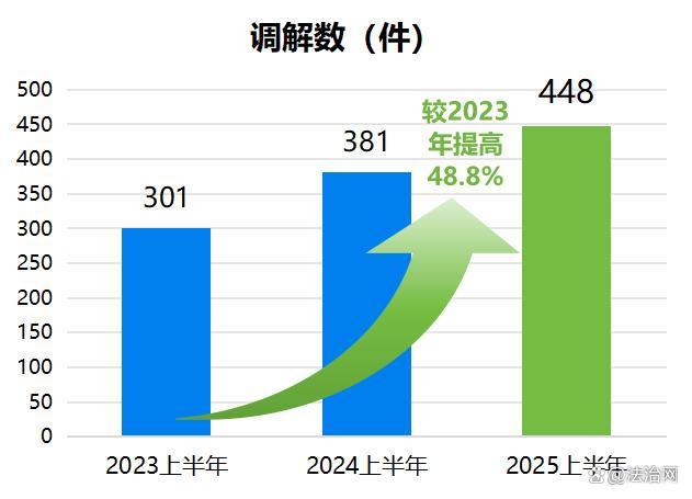 2025年上半年,以調(diào)解方式結(jié)案448件,較2024年上半年的381件提高17.6%,較2023年上半年的301件增幅高達(dá)48.8%,數(shù)量實(shí)現(xiàn)跨越式增長(zhǎng)。調(diào)解案件數(shù)量的顯著增加,有力促進(jìn)了矛盾糾紛的實(shí)質(zhì)性化解,提升了貴仲的仲裁公信力和群眾滿(mǎn)意度。