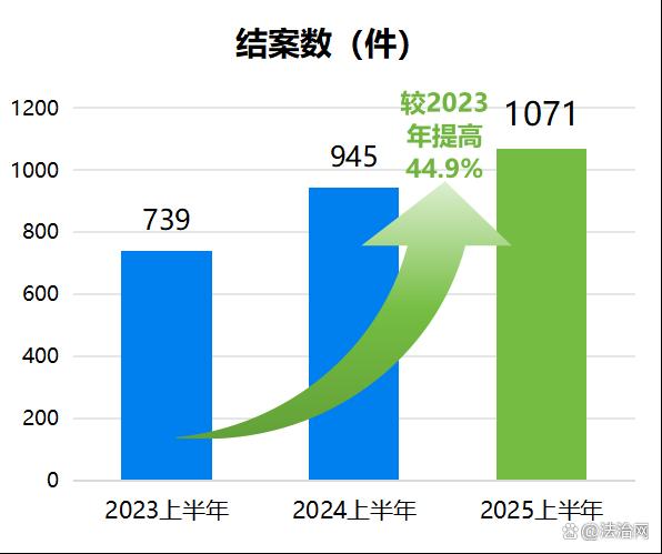 貴仲2025年上半年結(jié)案工作展現(xiàn)出強(qiáng)大韌性,結(jié)案數(shù)達(dá)1071件,較2024年上半年的945件增長(zhǎng)13.3%,與2023年上半年的739件結(jié)案量相比,增幅高達(dá)44.9%,結(jié)案數(shù)量呈現(xiàn)較大幅度的增長(zhǎng),仲裁效率顯著提升。