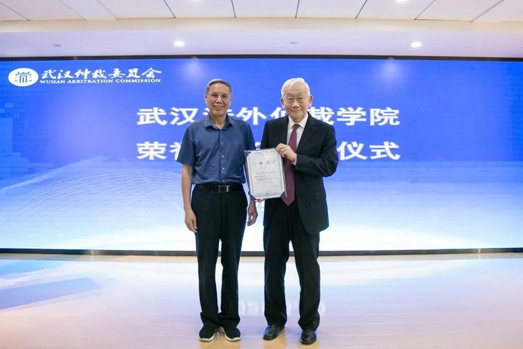著名仲裁專家楊良宜(右)被聘為武漢涉外仲裁學院名譽院長