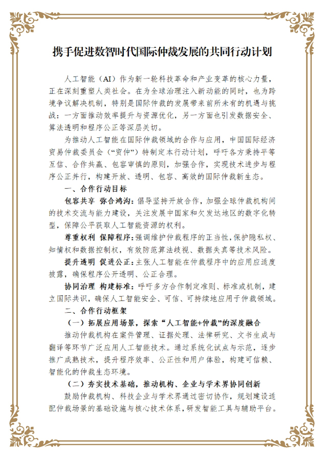 附:《攜手促進(jìn)數(shù)智時代國際仲裁發(fā)展的共同行動計劃》中英文文本