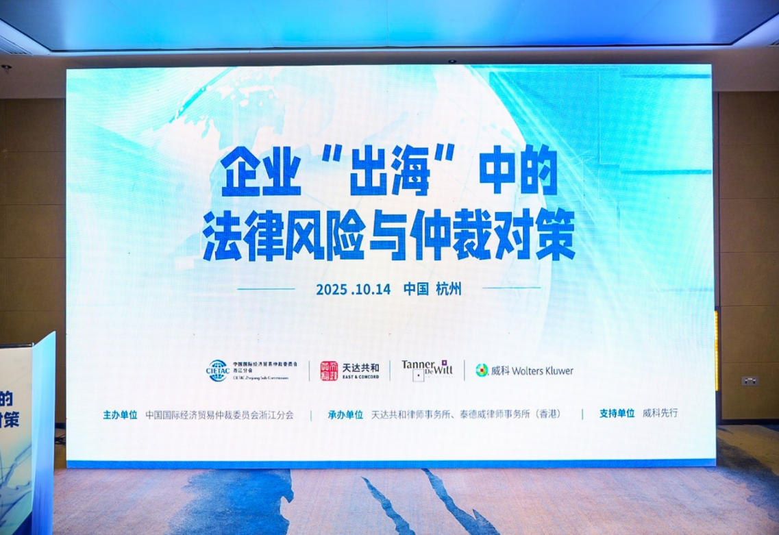 10月14日,由中國國際經(jīng)濟貿易仲裁委員會浙江分會(以下簡稱貿仲浙江分會)主辦的“企業(yè)‘出?!械姆娠L險與仲裁對策”研討會在杭州成功舉辦。