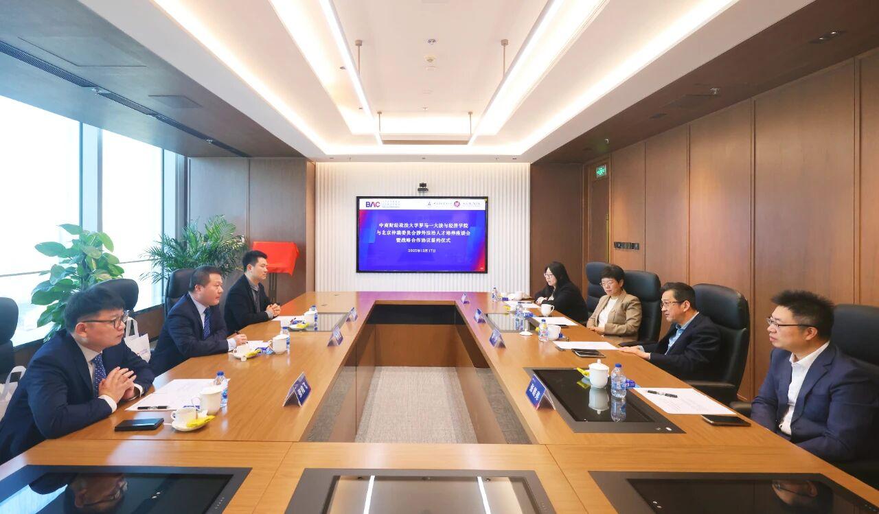 郭衛(wèi)介紹了北仲在國際一流仲裁機(jī)構(gòu)建設(shè)、仲裁人才隊(duì)伍建設(shè)以及專業(yè)化規(guī)則體系等方面的最新探索與成果。他對中南大法經(jīng)學(xué)院在法學(xué)與財(cái)經(jīng)交叉領(lǐng)域形成的深厚辦學(xué)傳統(tǒng)和學(xué)科優(yōu)勢表示高度肯定,并表示北仲始終堅(jiān)持專業(yè)化、規(guī)范化、國際化的發(fā)展方向,積極推進(jìn)國際化布局,今年新設(shè)立中亞分會、香港中心,對于高質(zhì)量、復(fù)合型法治人才的需求持續(xù)增加。期待雙方能夠進(jìn)一步深化合作,充分依托各自優(yōu)勢,在涉外法治人才培養(yǎng)、學(xué)術(shù)研究和實(shí)務(wù)交流等方面實(shí)現(xiàn)優(yōu)勢互補(bǔ)、協(xié)同推進(jìn)。