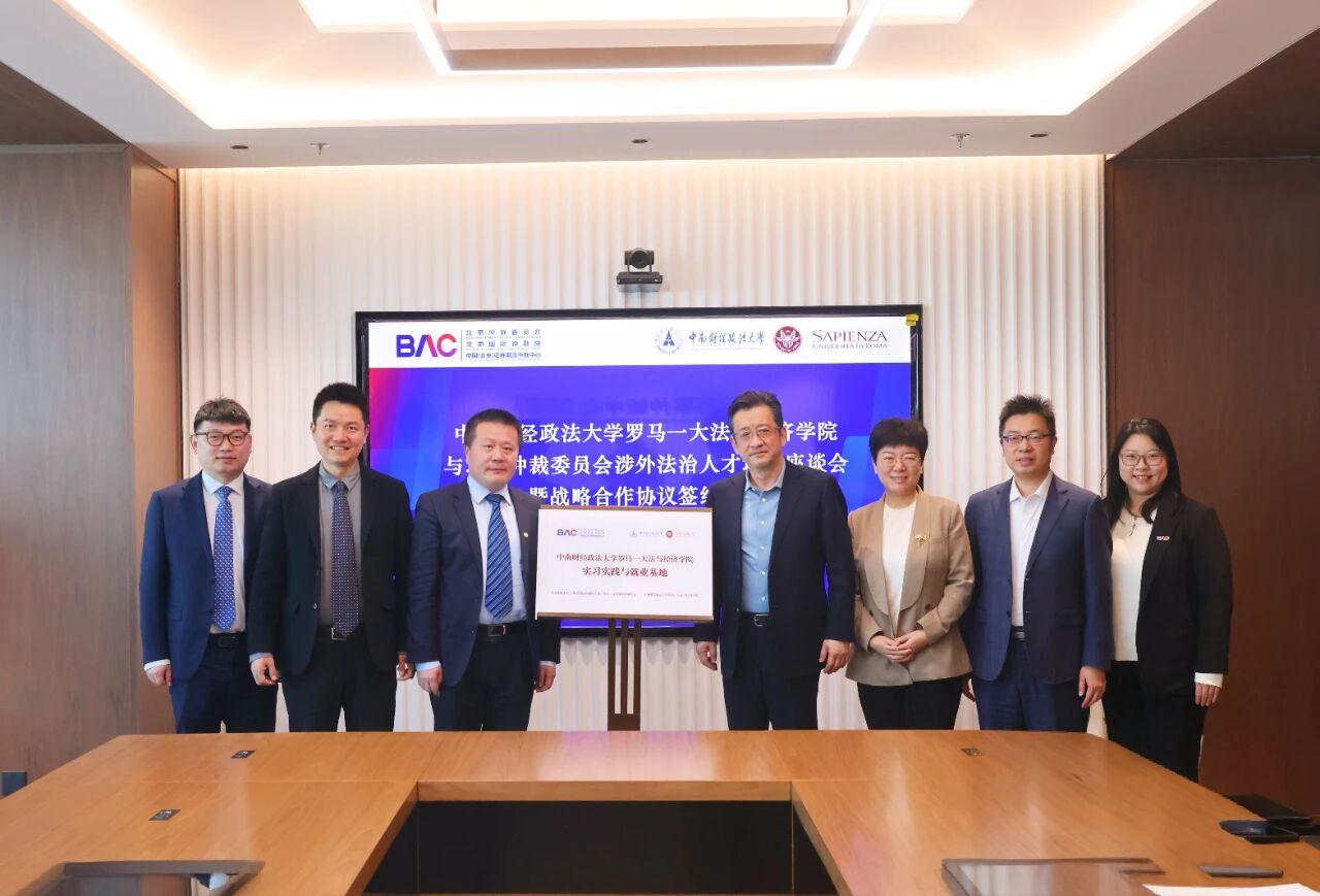 座談會后,雙方簽署《戰(zhàn)略合作協(xié)議》,并共同為“中南財(cái)經(jīng)政法大學(xué)羅馬一大法與經(jīng)濟(jì)學(xué)院實(shí)習(xí)與就業(yè)基地”揭牌。雙方均表示,期待通過共建實(shí)習(xí)與就業(yè)基地、聯(lián)合開展主題研討、加強(qiáng)學(xué)術(shù)交流與實(shí)務(wù)合作等方式,進(jìn)一步提升學(xué)生的實(shí)踐能力和國際視野,推動涉外法治人才培養(yǎng)取得實(shí)質(zhì)性成效。