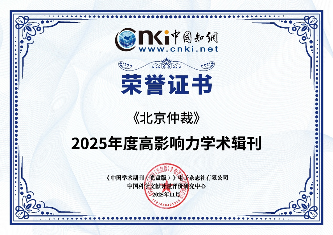 近日,中國知網(wǎng)發(fā)布了《高影響力學(xué)術(shù)輯刊評價報告(2025)》,并公布了2025年度高影響力學(xué)術(shù)輯刊名單。北京仲裁委員會/北京國際仲裁院/中國(北京)證券期貨仲裁中心(以下稱“北仲”)主辦的學(xué)術(shù)刊物《北京仲裁》在評估活動中蟬聯(lián)高影響力學(xué)術(shù)輯刊獎,系唯一入選并蟬聯(lián)殊榮的法律服務(wù)機構(gòu)主辦學(xué)術(shù)刊物。
