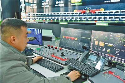 在老石旦煤礦生產(chǎn)指揮中心智能化調(diào)度室,隨著工作人員通過5G信號向井下工作面發(fā)出工作指令,深井中的皮帶運(yùn)輸機(jī)、破碎機(jī)、轉(zhuǎn)載機(jī)等一個(gè)個(gè)重型機(jī)械陸續(xù)被“激活”進(jìn)入生產(chǎn)狀態(tài)。