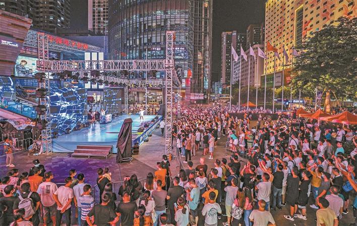 物質(zhì)文化、制度文化和精神文化三個(gè)層次互動共生,勾勒出一個(gè)豐富、飽滿、鮮活的深圳城市文化形象。圖為第二屆華強(qiáng)北潮流電音節(jié)。深圳特區(qū)報(bào)記者 何龍 攝
