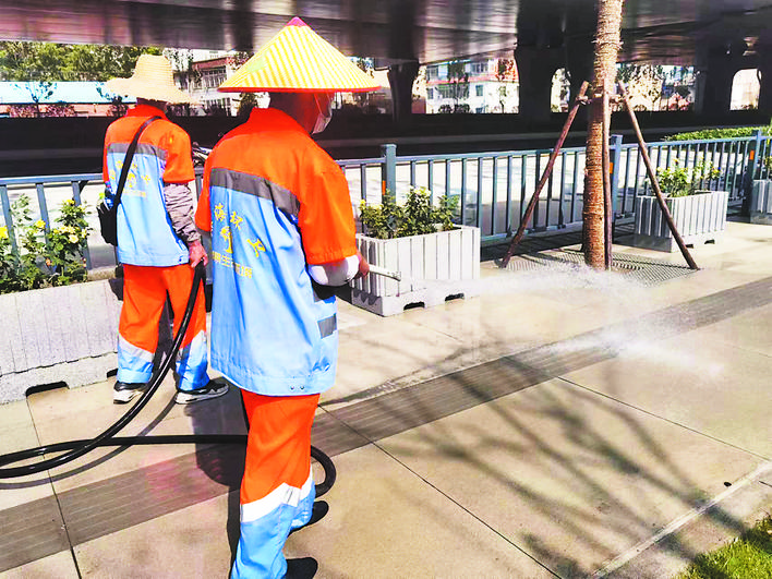 烈日下,“城市美容師”仍然堅(jiān)守崗位,用汗水保障城市干凈整潔。
