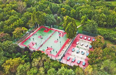 突出健身元素的同時,這個體育公園還把體育運動和綠地景觀有機融合,景觀種植以高標準植物點綴,組團式層級種植模式,結(jié)合區(qū)域特色及場地現(xiàn)狀,按照適地適樹的原則,合理布置油松、銀杏、白蠟等植物,使公園成為多功能性城市綠肺。
