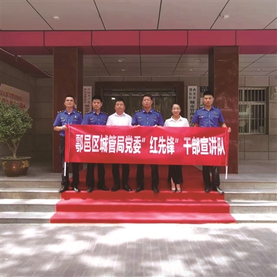 “我去蔣村街辦走親戚,在那里也發(fā)現(xiàn)了著裝整齊的城管隊員了!”8月,鄠邑區(qū)西街小學(xué)接孩子回家的家長們興高采烈地議論著。與西街小學(xué)一墻之隔的區(qū)城管局,此刻黨旗飄揚,格外耀眼。