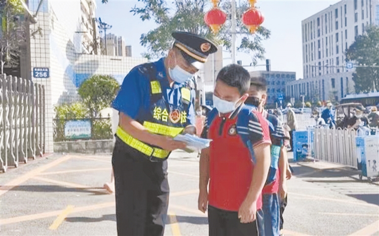 此外,包括一大隊、環(huán)衛(wèi)、機動車管理中隊等執(zhí)法局各部門,對學(xué)校周邊市容環(huán)境秩序進行了管理、盯守。完善校園“門前五包”管理制度,對周邊100米范圍內(nèi)的沿街門店進行逐一走訪,入店宣傳倡導(dǎo),排查問題,建立臺賬,加強預(yù)判,加大上、下學(xué)道路的執(zhí)法管理力度。