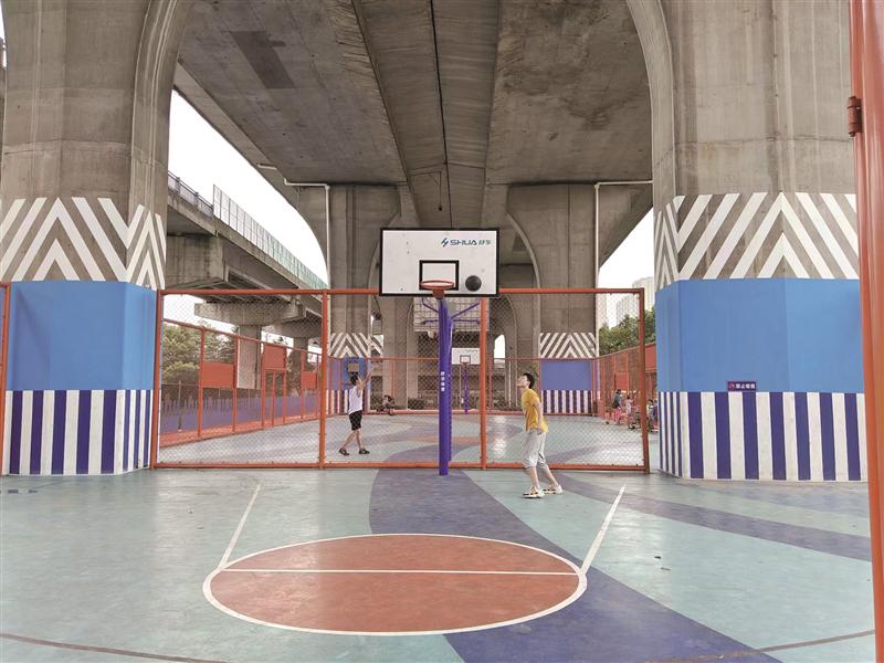 “高架樂園”不僅配備了嶄新的籃球場、棋牌廣場、文化舞臺、滑板場、乒乓球場、健身步道等文體設(shè)施,還在環(huán)境裝飾上融入泰伯藝術(shù)元素、新吳文化特征。經(jīng)過一番裝扮、布置,橋下變成了充滿活力的多彩走廊,明亮熱鬧的體育健身、文娛交流場所?!案脑旌?,橋下整體環(huán)境提升了?!泵刻於嫉健案呒軜穲@”練習(xí)跳舞的市民陳松開心地告訴記者,“政府為百姓辦了一件實(shí)篤篤的大好事?!?/p>