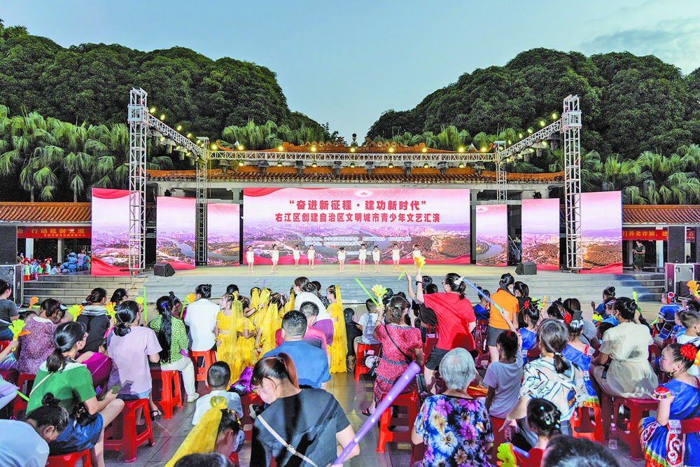 舉辦“奮進(jìn)新征程·建功新時代”右江區(qū)創(chuàng)建自治區(qū)文明城市青少年文藝匯演。