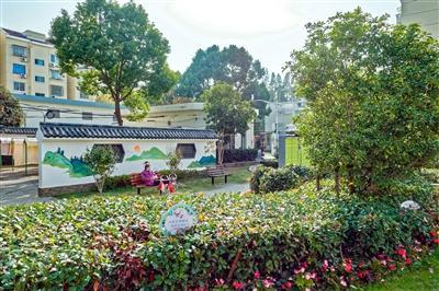 “微更新90%的內(nèi)容,都是居民自己完成的?!睘轫椖刻峁I(yè)藝術(shù)支持的王翔威介紹,設(shè)計師經(jīng)與居民討論確定喜愛的江南風(fēng)格圖畫,并在墻上用鉛筆打稿,隨后由“香楠路家園守護(hù)隊”及其他居民耗時2周時間,完成全部墻繪上色。此外,居民文藝骨干還發(fā)揮主觀能動性,在廣場正中一座小亭子的立柱上,添上內(nèi)容為“露潤香園浮瑞色 霜含雅韻掛繁英”的對聯(lián),使環(huán)境再添幾分“文氣”。長廊、粉墻、拱門,墻上的“小橋流水”,外加紅杏樹、柳樹、風(fēng)信子等景致,讓人仿佛“誤入”一座簡約版的江南園林。