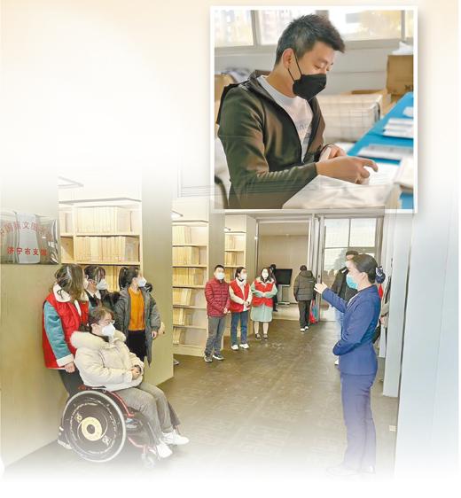 下圖:在濟(jì)寧市圖書館內(nèi),工作人員正在介紹圖書館中的無(wú)障礙設(shè)施。 馬儀 攝