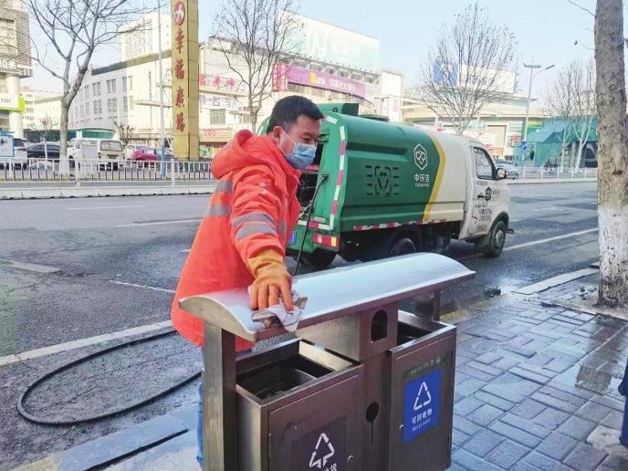 精細(xì)清洗,確保衛(wèi)生無死角。在只楚路,一抹橙色的身影蹲在垃圾箱旁,手里拿著抹布仔仔細(xì)細(xì)擦拭著垃圾箱。當(dāng)記者走近時(shí),保潔員孟凡榮指著垃圾箱的表面開心地告訴記者:“看,像家里的鏡子一樣,都能照出人影了??粗筛蓛魞舻睦?,我這心里也很美?!睘楸WC大掃除全覆蓋,芝罘區(qū)環(huán)衛(wèi)中心督導(dǎo)兩家服務(wù)企業(yè)組織保潔員開展精細(xì)化擦拭,同時(shí)加大對垃圾點(diǎn)位周邊的沖洗力度,清除衛(wèi)生死角,確保垃圾箱及周邊干凈整潔。