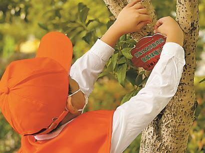 云臺二居民區(qū)是個純住房老小區(qū),綠化面積大,有不少居民在樹木間隨意拉線晾曬,嚴重影響小區(qū)面貌和綠植正常生長。小朋友們注意到這一現(xiàn)象后,召開紅領(lǐng)巾議事會出謀劃策,提出了勸阻、增加晾曬區(qū)、制作插牌做提醒、綠植掛牌認養(yǎng)等措施,得到了居民區(qū)黨總支、物業(yè)和業(yè)委會的支持,大家分頭行動,增加集中晾曬區(qū),還著手安排制作插牌和綠植認養(yǎng)牌。孩子們也紛紛認領(lǐng)綠植樹木,在認領(lǐng)牌正面注明姓名和認養(yǎng)信息,背面標注植物名稱、科目類別和種植日期。這樣,每一棵綠植都有了獨一無二的身份信息,每個孩子也有了自己專屬的“責(zé)任樹”。一到課余時間,小朋友們就來觀察樹木長勢和有無病蟲災(zāi)害,還會播種花籽,有禮貌地勸阻不文明行為。