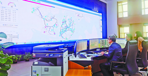 在廈門市政水務(wù)集團(tuán)調(diào)度中心,工作人員通過供水管網(wǎng)實時仿真系統(tǒng),就能掌握管網(wǎng)運行狀態(tài)。(廈門市政水務(wù)集團(tuán) 供圖)