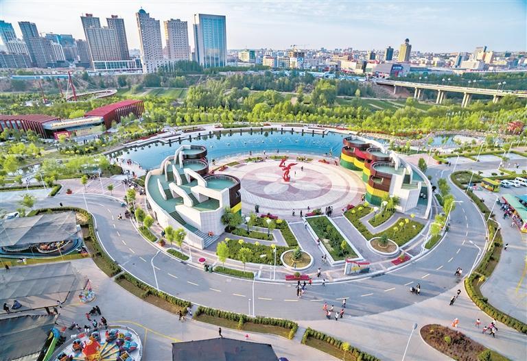 沙河公園。榆林市生態(tài)環(huán)境局榆陽(yáng)分局供圖