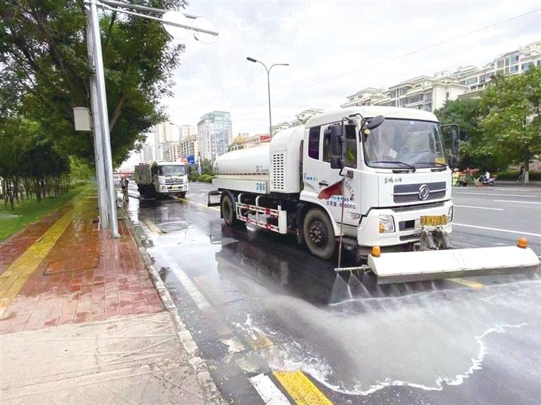 為持續(xù)鞏固全國文明城市創(chuàng)建成果,提升城市“顏值”,迎接即將到來的2023蘭州馬拉松,6月7日,蘭州市開展鐵路兩旁、公路兩側、河道兩岸等環(huán)境綜合整治工作,市城管委統籌力量、精心組織,用智能化手段持續(xù)開展以賽道為重點的市容環(huán)境綜合整治和氛圍營造工作。圍繞打造精致凈美城市、營造“一流”賽道,城管、林業(yè)、住建、工信、蘭州黃河風情線大景區(qū)等部門按照職能重點,對賽道全線的環(huán)境衛(wèi)生、市容秩序、綠地空株補栽、苗木整形修剪、綠雕盆景修復、樓頂樓宇“凈空”、建筑物外觀立面、基礎設施、市政設施等方面開展無死角整治。圖為安寧區(qū)環(huán)保部門清潔路面。(記者 張旭永)