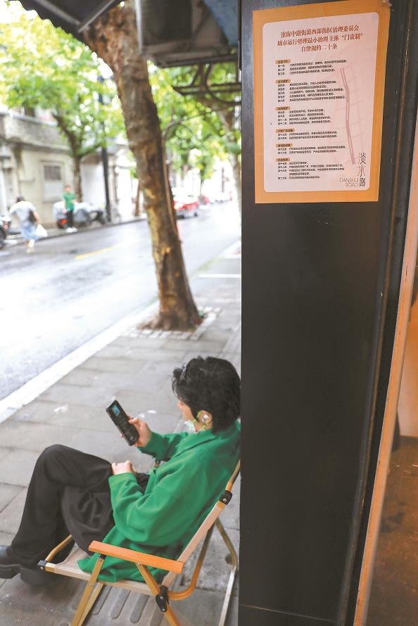 走在這條路上,你會(huì)注意到,不少店鋪都將圍墻向里退界,借墻體“擠”出幾個(gè)戶外卡座;你也會(huì)注意到,很多商戶墻上,貼著“門責(zé)制”自律規(guī)約二十條,對(duì)衛(wèi)生、安全和規(guī)范經(jīng)營(yíng)等作出承諾。政府部門希望,通過“最小治理單元”的自治,引導(dǎo)商戶管理好自家“一畝三分田”,并增加商戶今后對(duì)于街區(qū)各項(xiàng)事務(wù)的參與感和話事權(quán)。