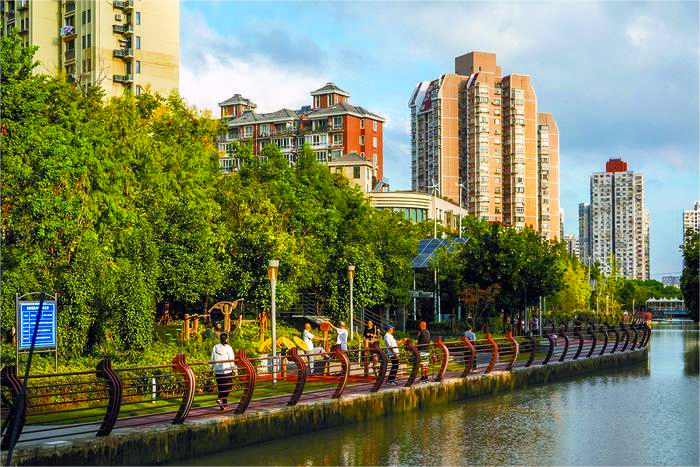 隨著城市更新的不斷推進,位于上海市楊浦區(qū)茭白園路蘭州路附近的“老破小”城中村,如今已成為環(huán)境優(yōu)美且宜居的現代化住宅社區(qū)。圖為市民在蘭州路綠化景觀區(qū)域內休閑散步。(王岡)