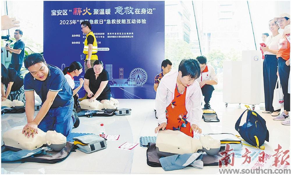 9月9日,在第24個“世界急救日”當天,深圳市寶安區(qū)啟動“薪火聚溫暖,急救在身邊——群眾應急救護培訓”,依托各級黨群服務(wù)陣地,構(gòu)建“政府主導、部門協(xié)同、專業(yè)指引、科技支撐、社會參與”的全覆蓋社會急救培訓,守護人民群眾的生命安全。首期培訓當天在寶安區(qū)黨群服務(wù)中心和10個街道的黨群服務(wù)中心同步開展。