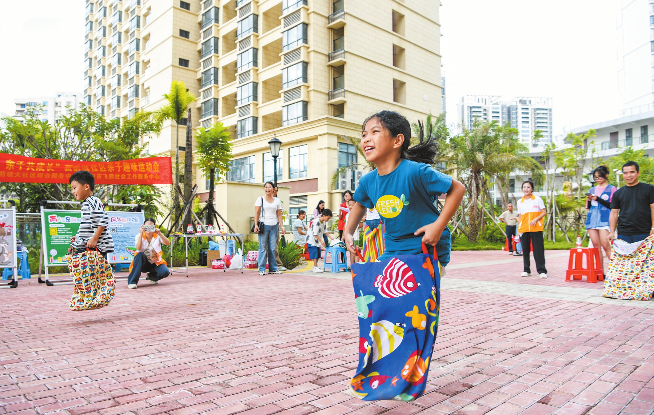 室內(nèi)庭審熱烈,室外歡聲笑語(yǔ)不斷。當(dāng)天,該社區(qū)的親子趣味運(yùn)動(dòng)會(huì)也同時(shí)舉辦,“歡樂袋鼠跳”“風(fēng)火輪滾滾”、兩人三足……喝彩鼓勁聲回蕩在現(xiàn)場(chǎng),多彩有趣的親子互動(dòng),在鍛煉身體的同時(shí)進(jìn)一步拉近了親子間的距離。