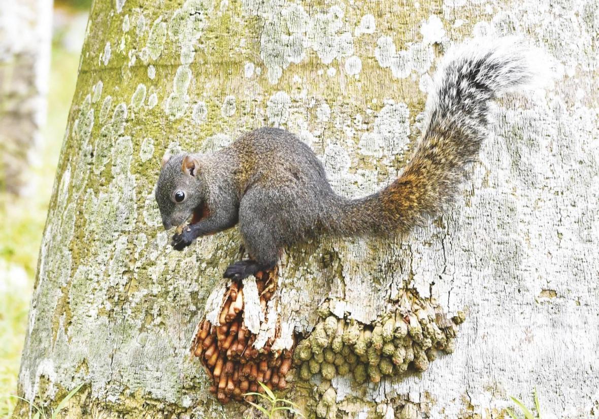 公園里一陣秋雨過(guò)后,松鼠出來(lái)覓食。 記者 梁楓 攝