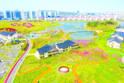 2020年,江北新區(qū)圍繞長江大保護、水環(huán)境提升的建設原則,對原有湖區(qū)進行清淤和沖洗,并通過“拆、清、治、建、擴、引、修”等措施,拆除城中村、清理各類垃圾、種植水生植物……從而徹底改善了湖區(qū)水質,打造富有特色、多樣化、親水性的公園景觀水系。2021年,桃湖公園正式對外迎客,新栽種的75個桃樹品種,讓這里成為南京最大的桃花觀賞基地,搭配原有植物,桃湖公園隨處可見喬木、灌木、草坪,到處都是大自然的氣息。如今,桃湖公園已成為當?shù)鼐用裨诩议T口休閑游玩、鍛煉身體的一處絕佳場所。